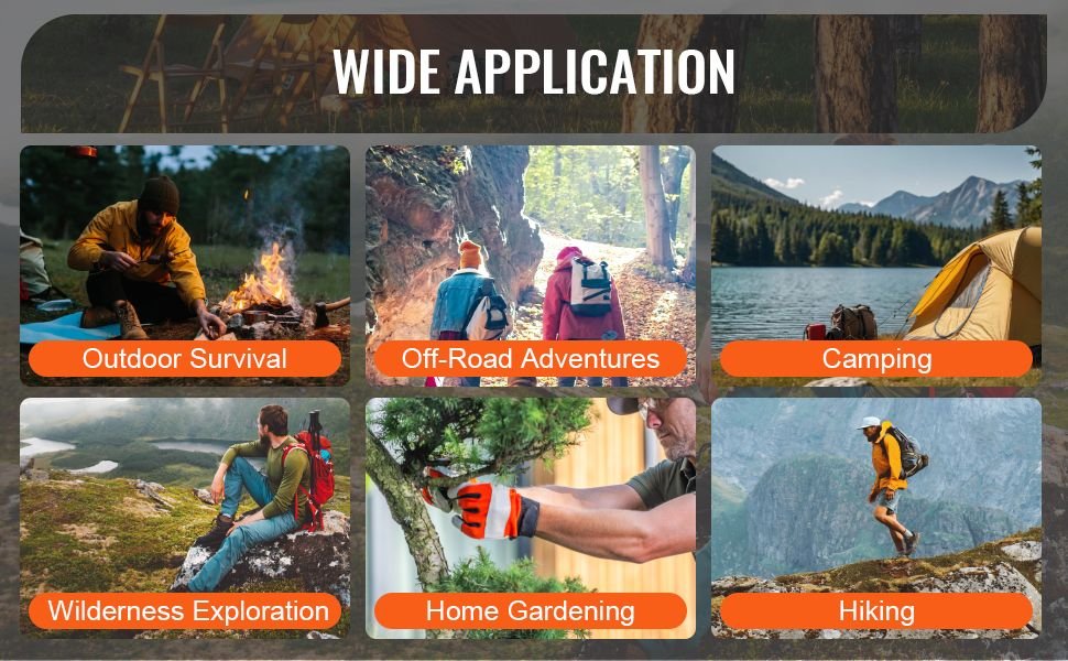 • Versatile Camping Multitool Kit: This survival shovel includes a shovel, knife, compass, whistle, glass breaker, fire starter, and more-perfect for digging, chopping, fire-starting, cutting, signaling, and bottle-opening. It is a powerful tool with high practicality.